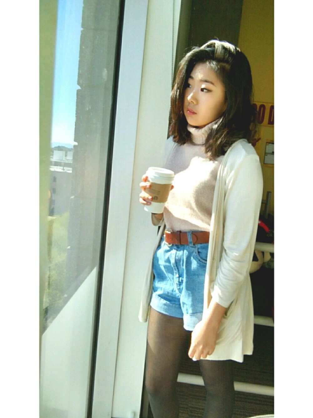 A winter outfit where you want to show off your legs but since its too cold, you can pair it with some tights and a cardigan.