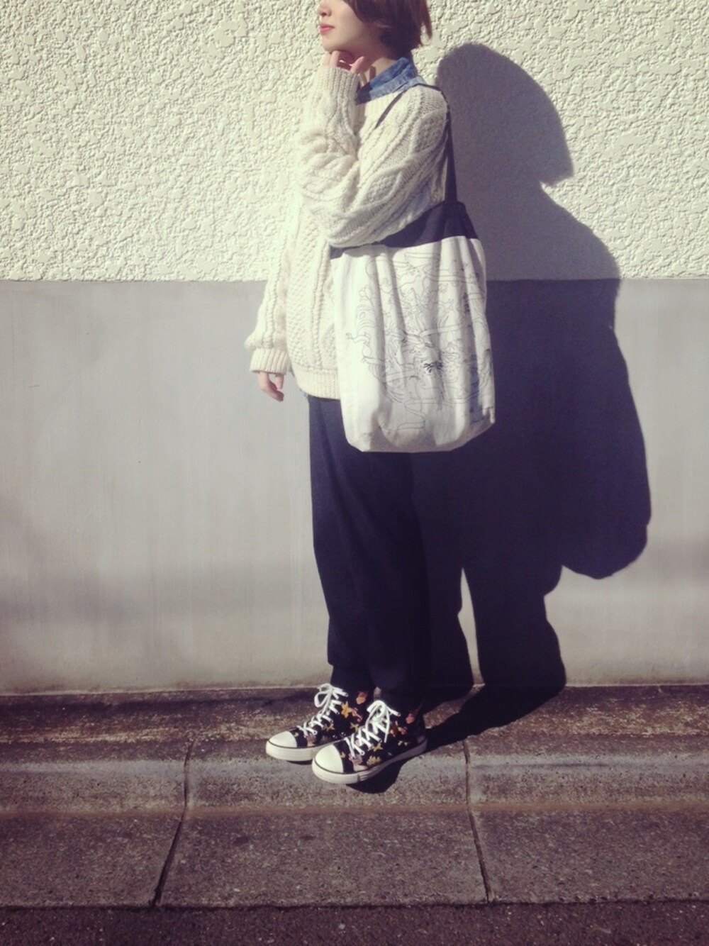 お気に入りのスニーカー 天気が良くて今日はよく歩いた セーター used パンツ note et silence スニーカー Alexsander lee chang バック pass the baton