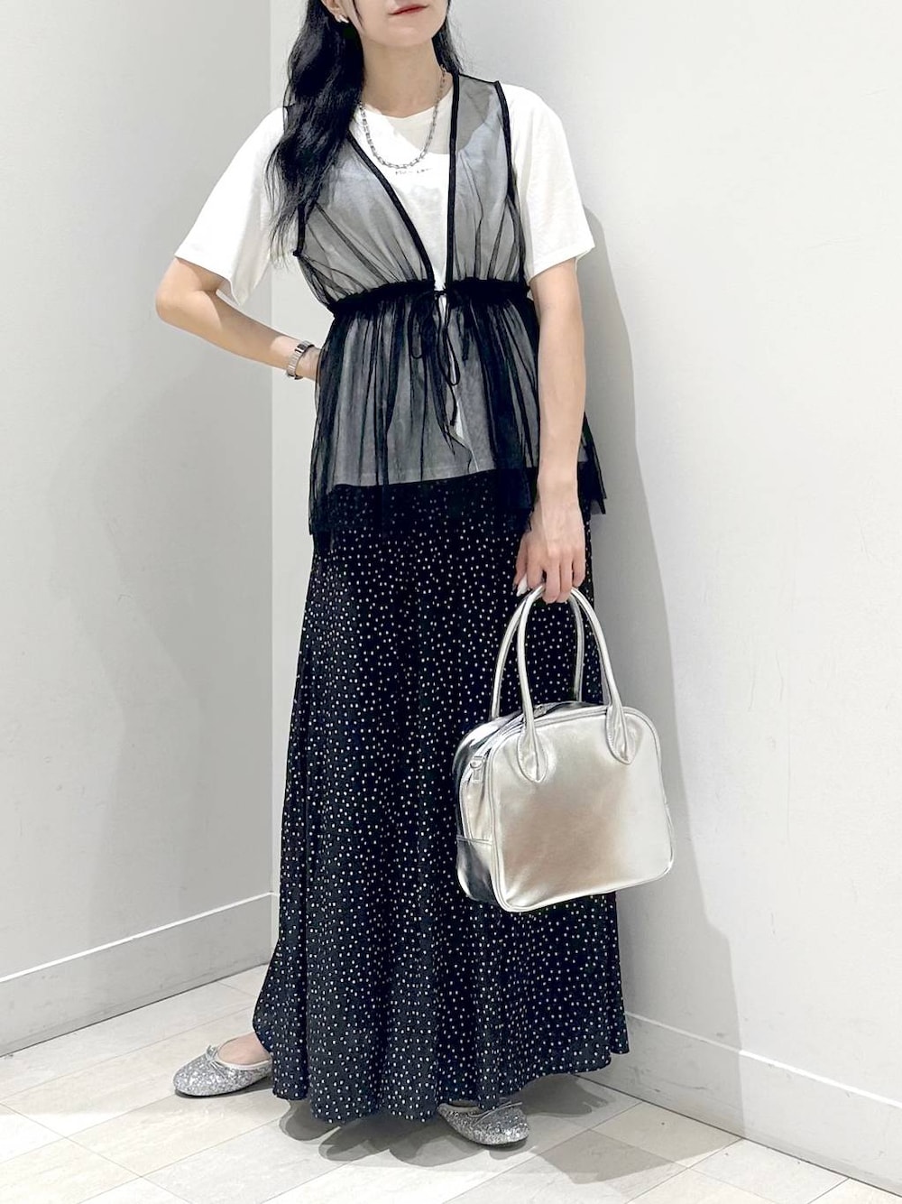 ご覧いただきありがとうございます👣⸒⸒ チュールベストのモノトーンコーデ🖤 ------------------ ▷◁ ぜひいいねとフォローお願い致します📓🔎