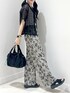 ご覧いただきありがとうございます👣⸒⸒ ゆるっとシルエットで 体型カバーも風通しもバッチリ🌿 モノトーンだから柄パンも大人っぽく✔️ ------------------ ▷◁ ぜひいいねとフォローお願い致します📓🔎