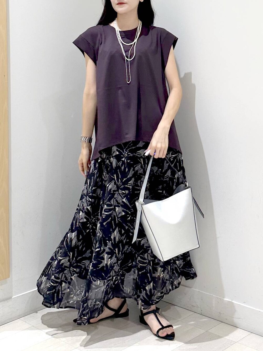 ご覧いただきありがとうございます👣⸒⸒ 猛暑日もひんやり快適❄️ 機能素材トップス×涼しげリーフ柄スカートで大人の夏スタイル🌿 ------------------ ▷◁ ぜひいいねとフォローお願い致します📓🔎