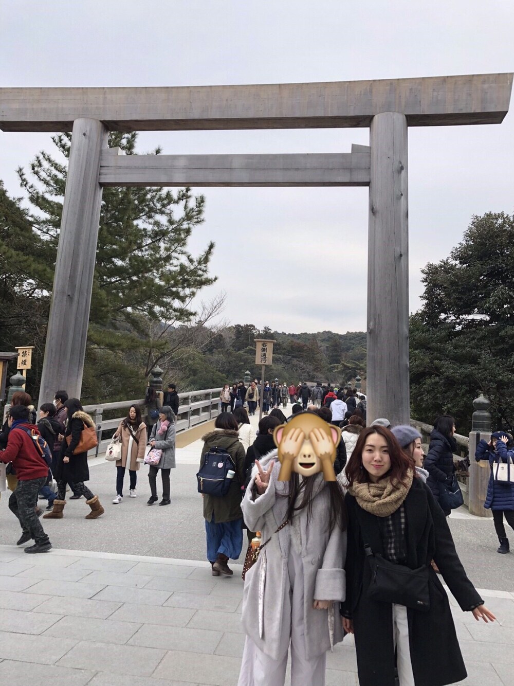 この前の春休みにお伊勢巡りしてきました⛩ お気に入りのチュールギンガムニットと、 一目惚れのステッチ入りベーカーバギーで春先取り🌸