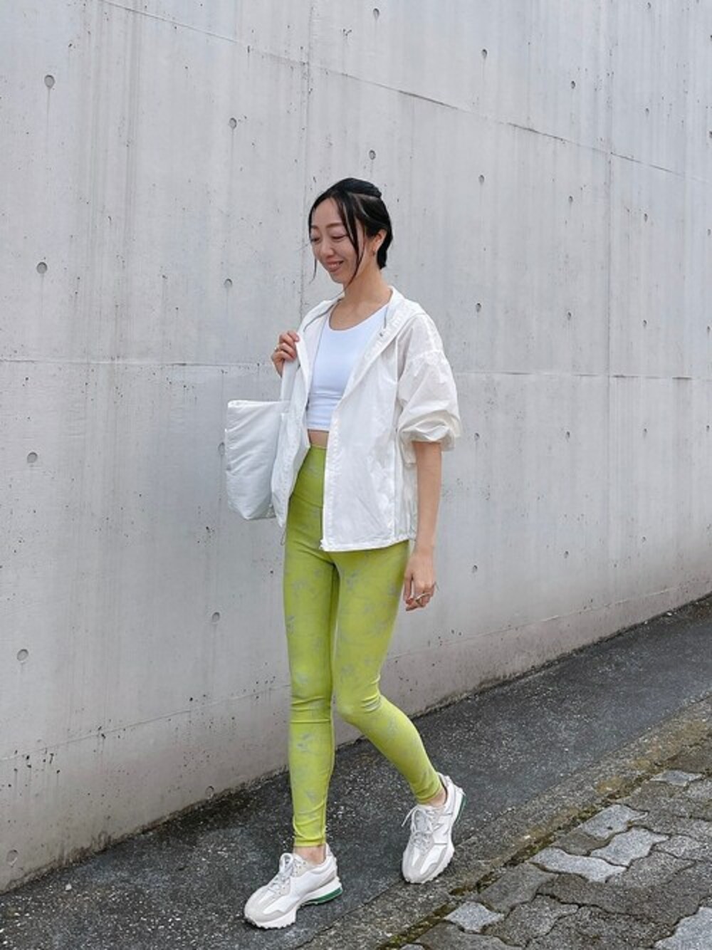 トップス:0(S~M)サイズ レギンス:0(S~M)サイズ アウター:F(フリー)サイズ バッグ:F(フリー)サイズ アクティブな日も、おしゃれと快適さを両立します。 ヨガやランニング後も、そのままお出かけできるスタイリングです。