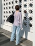 トップス:F(フリー)サイズ パンツ:私物 バッグ:F(フリー)サイズ 身頃も袖まわりもゆったりしていて、とにかく楽ちんな着心地。 薄手で軽くストレッチも効いているので、一日中ストレスなく過ごせます。 着丈は少し長めで、そのままでも前だけインしてもバランスよく決まります。