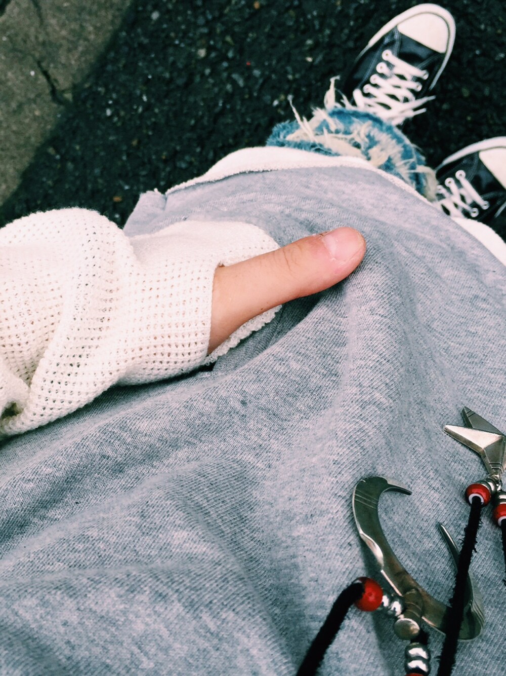JUMBOのニット/セーター「THUMB HOLE ワッフルロング丈クルーネックニットトップス」を使ったコーディネート