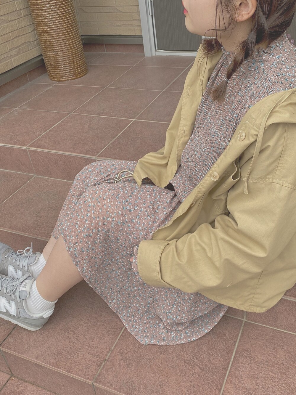 春にもってこいの、ピンクベースのワンピース☺︎ くすみ色になってるからブリブリしてない感じがまた良き✌︎ これ着て花見デートしよぉ〜