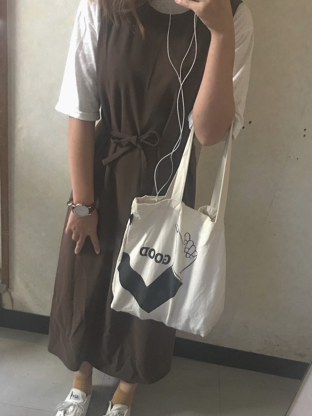 バイトDay なのでラフに☁️ 昨日の古着屋さんで買った 300円のワンピース