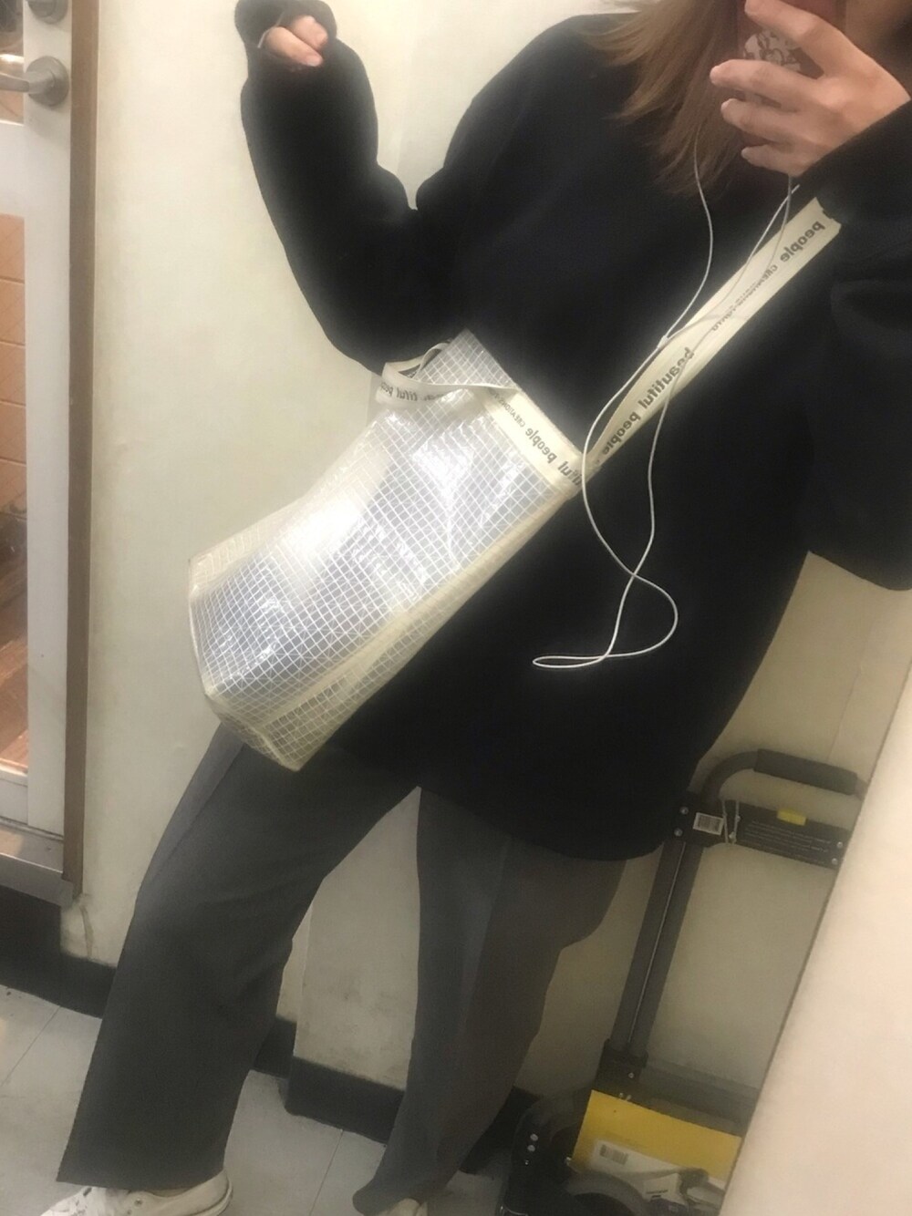 마유のトートバッグ「◆beautiful people 2WAYビニールトートバッグ」を使ったコーディネート