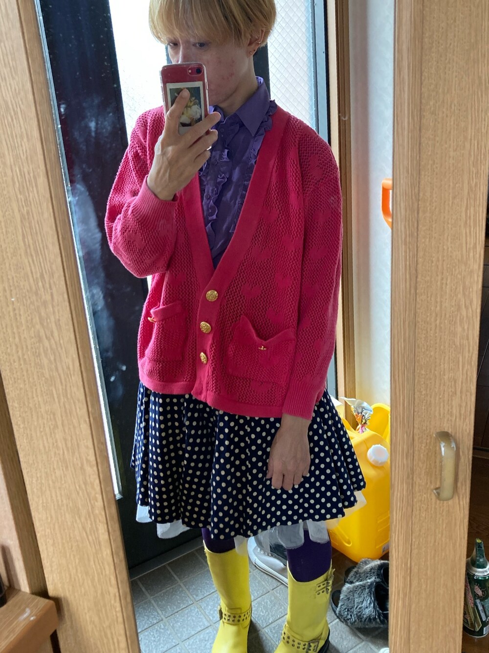 全身入れようとした。 鏡汚ねえ! 好きなもの適当に手に取ると 紫とかピンクになります。 黄色いブーツ、わたしの万能アイテムすぎる。 昨日GWのライブが一気に5本 延期になってもう逆に笑う。