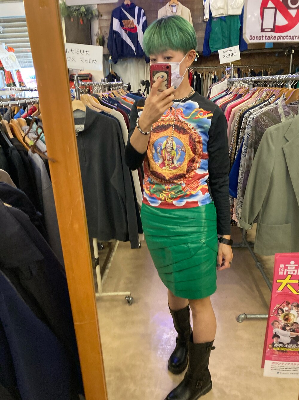 スカートがNEW 本革だけど段々になってるし 髪色とお揃い。 お店番しつつ自分の秋物も 物色してるw