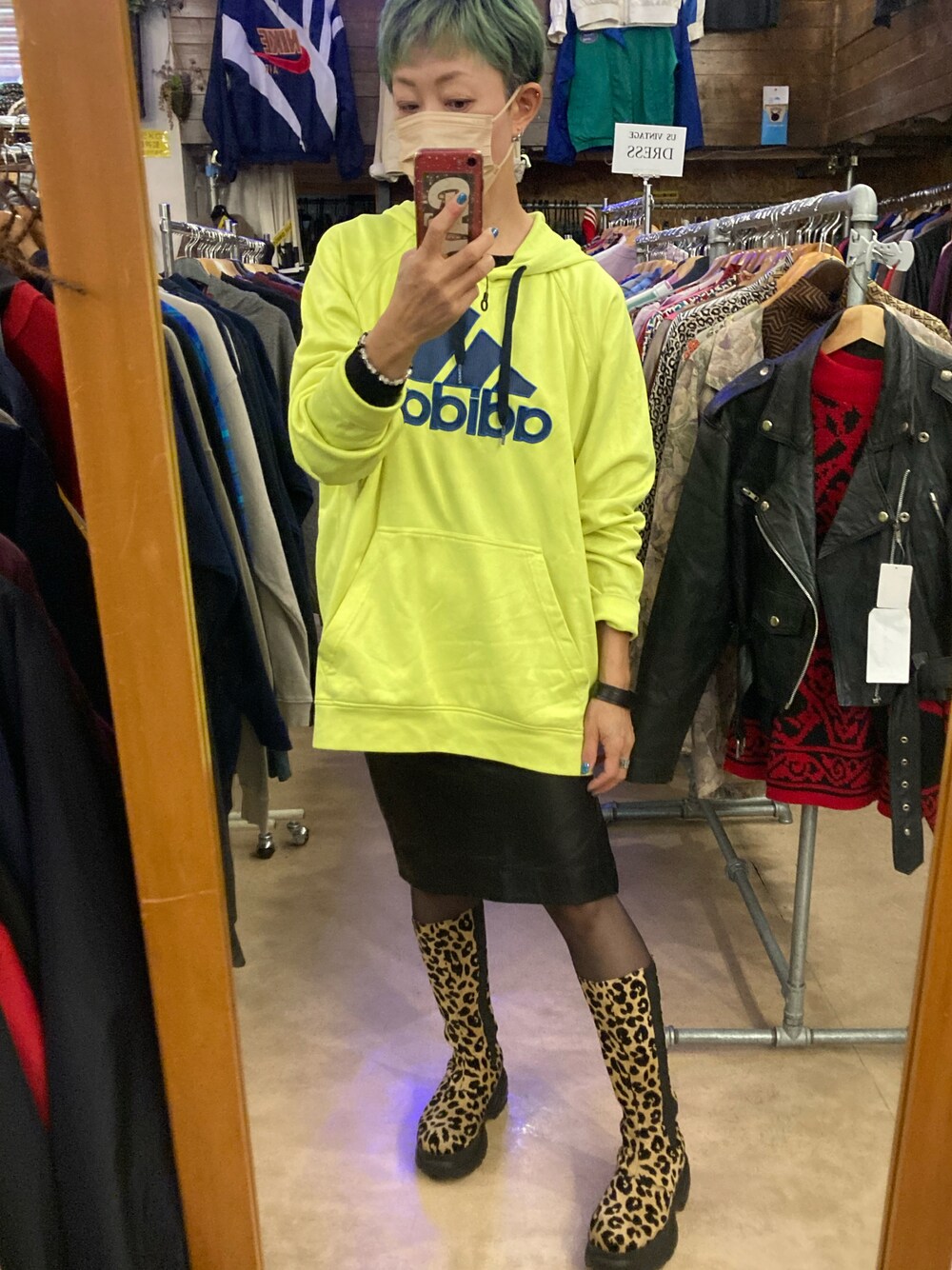 今日のお仕事着。 パーカーは派手め 下はリアルレザーの スカートとブーツ 関係ないけどずっと 映り込んでるライダース 本革(重いからたぶん牛)で 6000円台なのにまだある。 もう少しサイズ小さかったら 私が欲しいよ