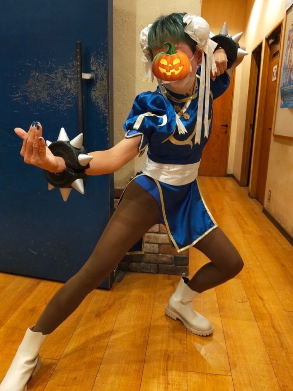 【ガチコスプレすみません】 ハロウィンライブは ガチの春麗コスしました🐼 透けないタイツ履いてたけど 動くとほぼ尻丸出しになるので ライブ中は周囲への配慮で ブルマ履いてた。 推し(メスの蛾コス)のセクシーさ に完全に戦意喪失
