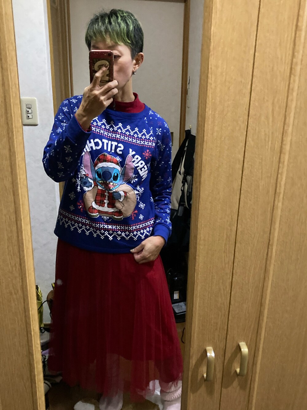 今日の服 今日しか着られない スティッチ 動画付けてみました🎄