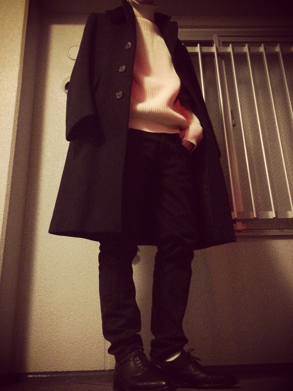コートはドリス ニットはアンデルセンアンデルセン デニムパンツはドリス 靴はミハラヤスヒロ 見えにくいけどソックスはギャルソン です