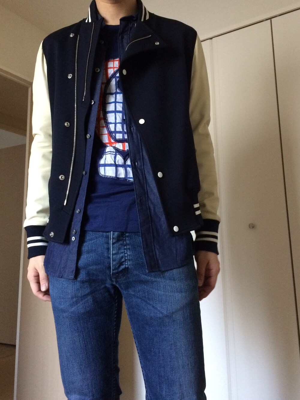 デニムとデニムシャツと変な顔