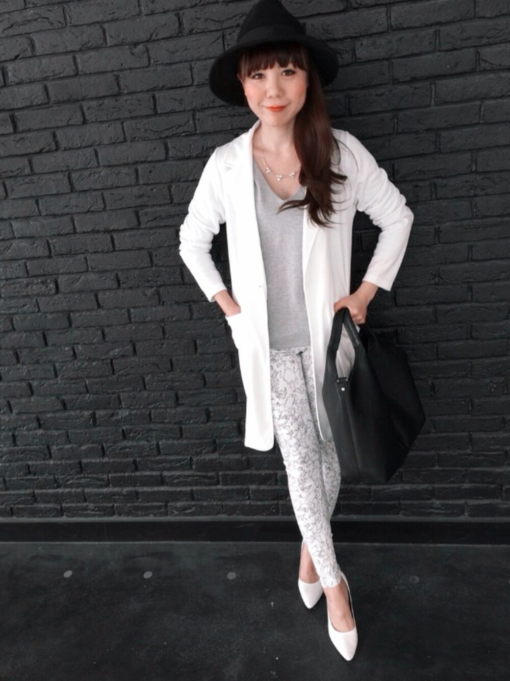 スプリングコートが主役のコーディネート♡ トレンドのホワイトコーデにパールアクセを取り入れ、春らしくまとめてみました♪ 長さのあるチェスターコートはスキニーにぴったり!!! 白のパンツが苦手な方も柄のパンツなら透けにくく、足もスッキリ見えますよ(^^)