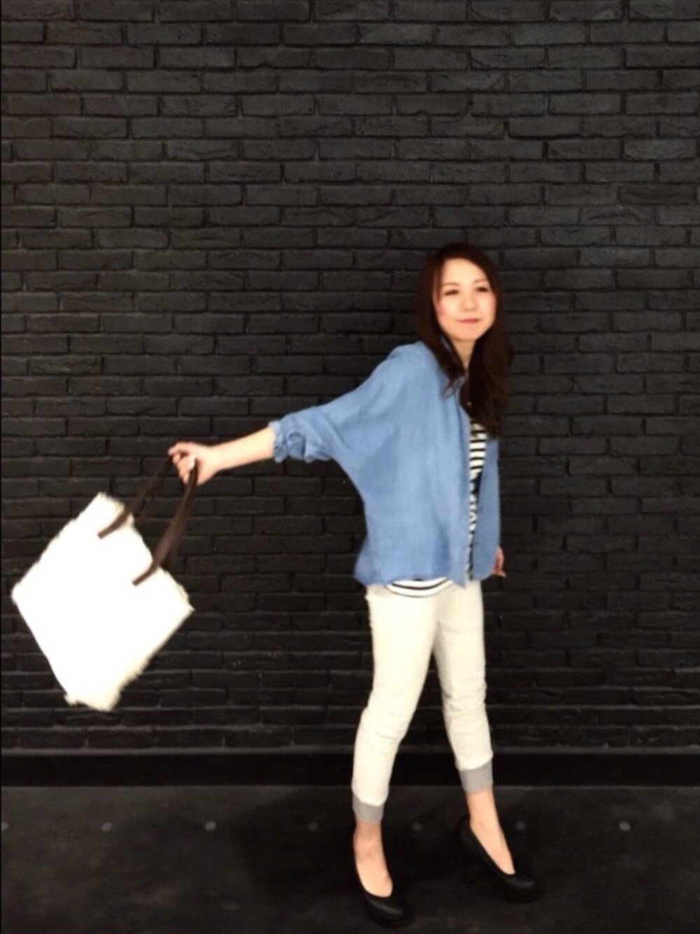 楽ちんコーデ♡ デニムシャツはドルマンのデザインがポイントで形がすごくかわいいです😍 素材もサラッとしていて着心地good♪ 切りっぱなしがかわいいキャンバスバッグでちょっとしたお出かけにおすすめのコーディネートです!!