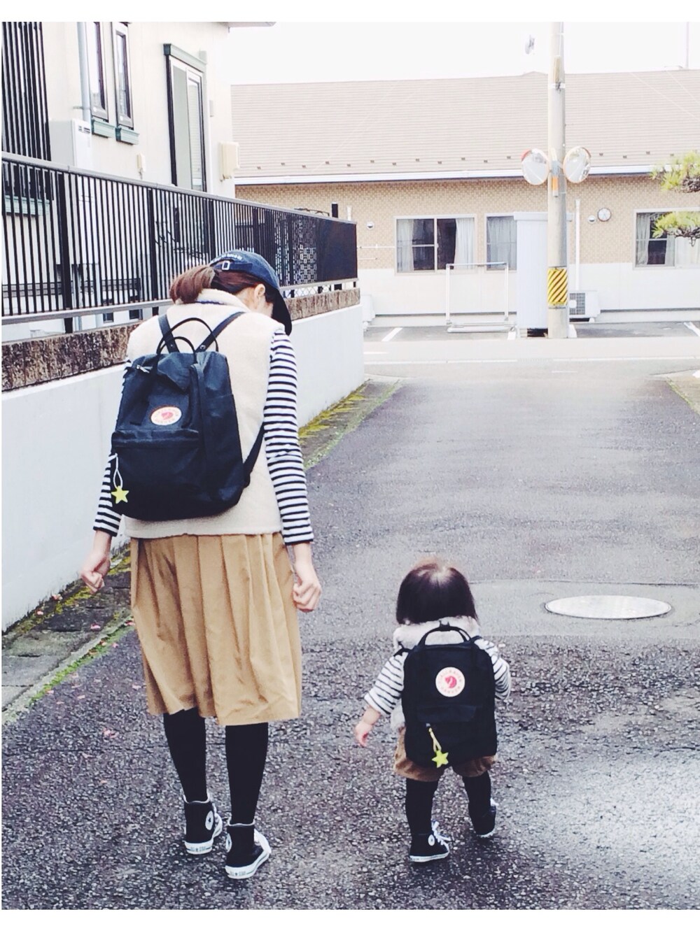 わたしも娘も パタゴニアフリース × ボーダー × ベージュ × コンバース でリンクしたときのコーデ٩(◜ᴗ◝ )۶