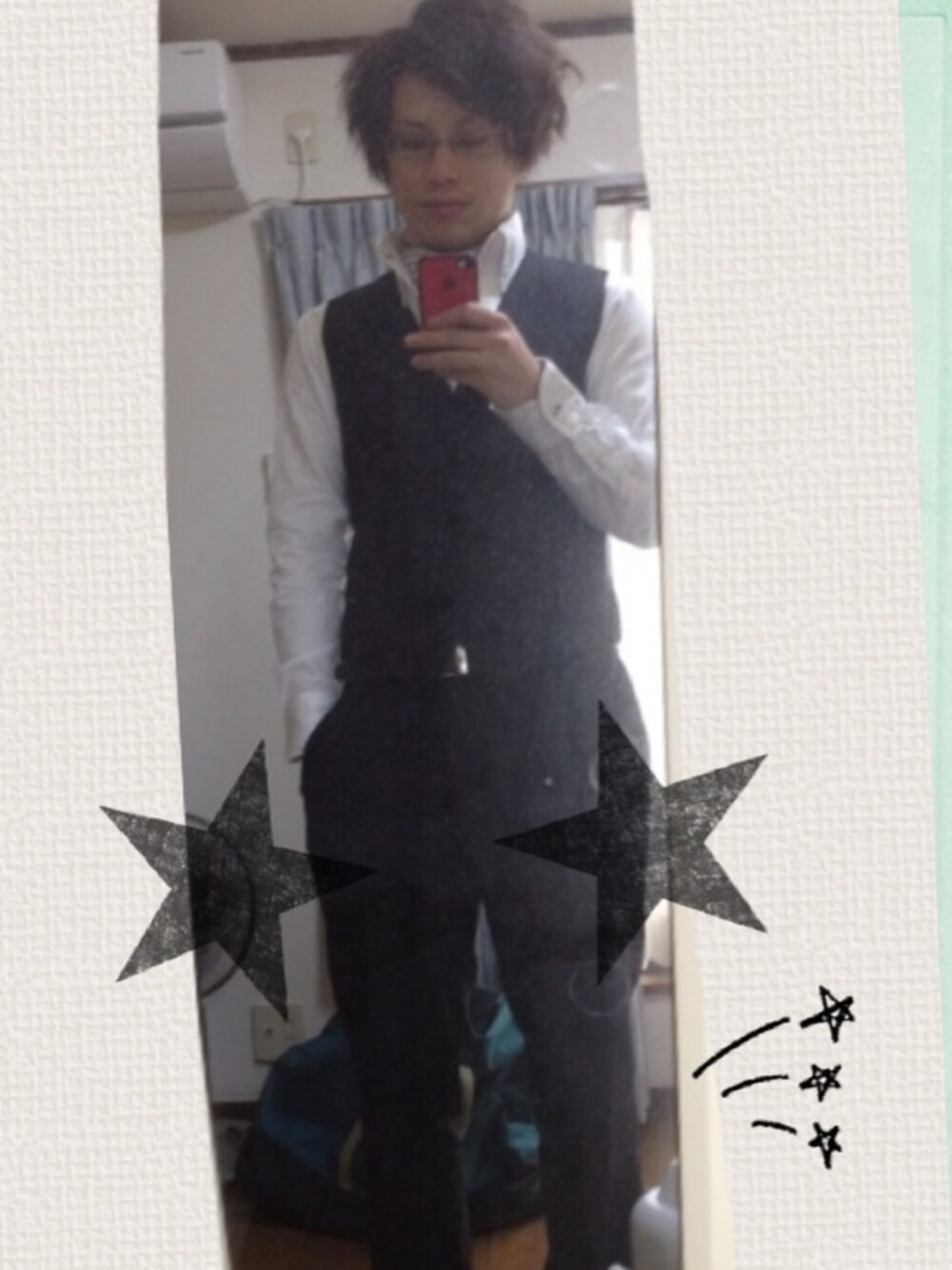 一次会はネクタイスタイルで 二次会はアスコットタイ&ベストで(๑⁼̴̀д⁼̴́๑) ってか鏡が汚いwァ,、'`( ꒪Д꒪),、'`'`,、