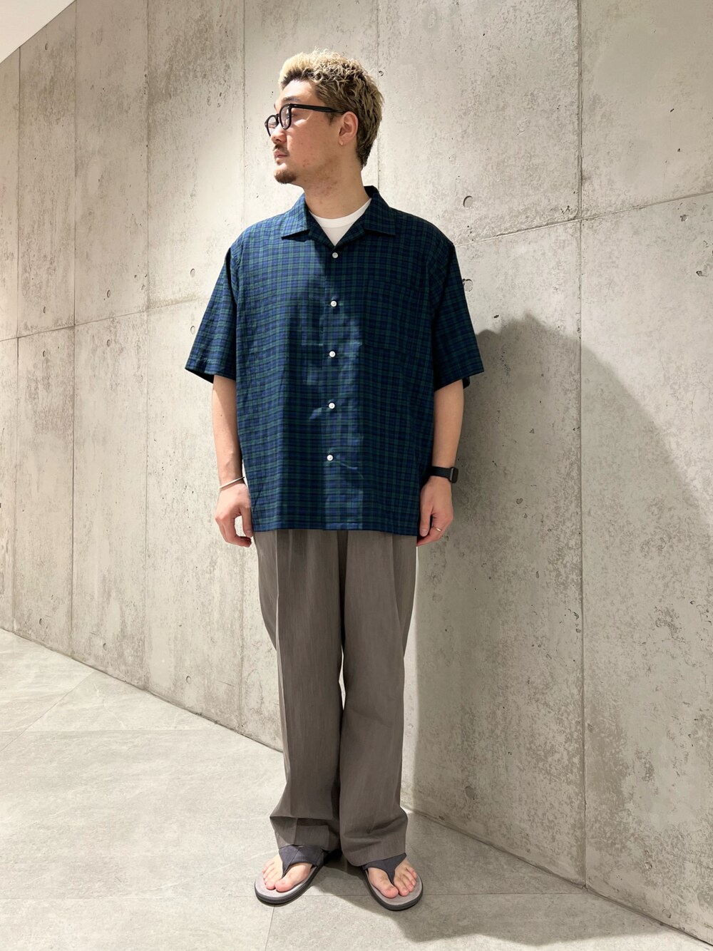 FORK&SPOONからオープンカラーチェックシャツを中心とした夏の大人カジュアルスタイル! キレイめなコーディネートに足元はスエードのビーチサンダルを👍 このラフさが個人的に◎です!! 是非お試しください!!
