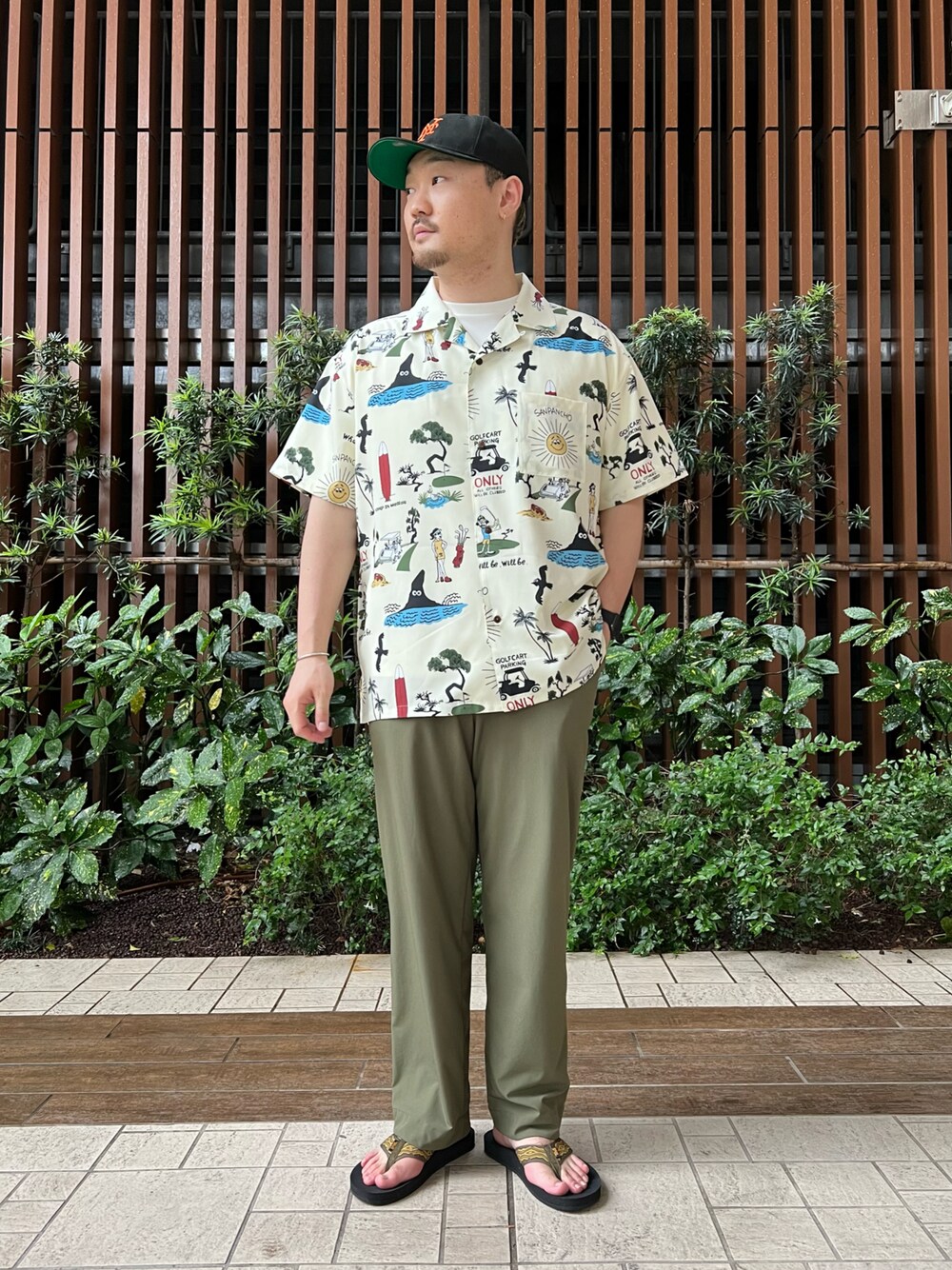 OOPS Ryu Ambeコラボアロハシャツをを中心としたリラックスコーデ!! 夏を感じさせるキャッチーなデザインが魅力の一着! サイズ展開も豊富なので幅広い方に着用していただけますよ!! 肌触りも抜群なので夏でも快適に過ごせます!! 是非お試しください!