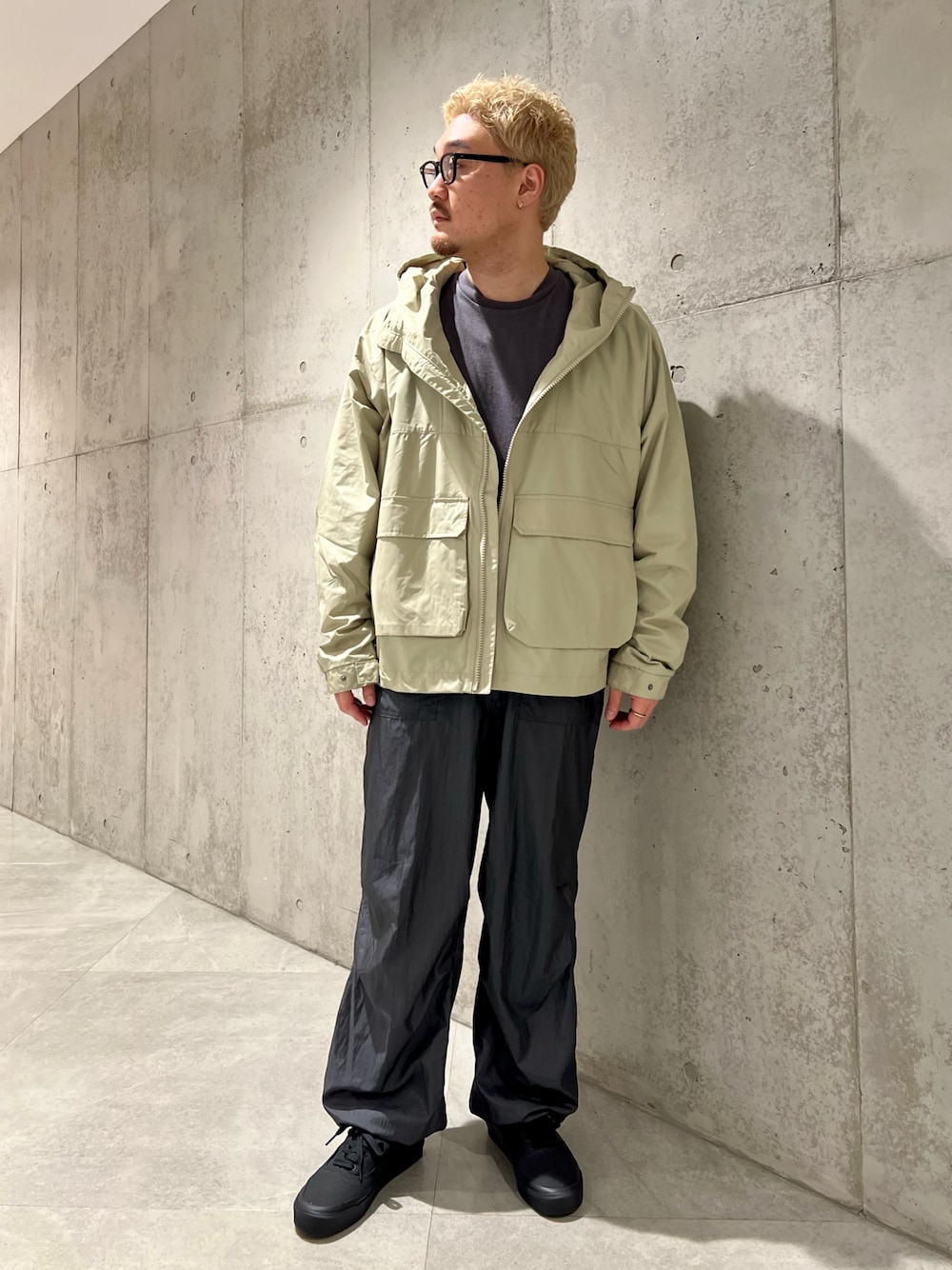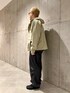 Sonny Labelからショートフードパーカーを着用したカジュアルコーデ! ゆったりとしたサイズ感と癖のないデザインなので幅広い方に着用していただけます! ざっくり羽織っても良し、フロントジップを閉めてモードに着用しても良しの万能な一着です👍 身幅は広めですがドローコードが付いているので絞ってもかっこいいです!! 是非お試しください!!