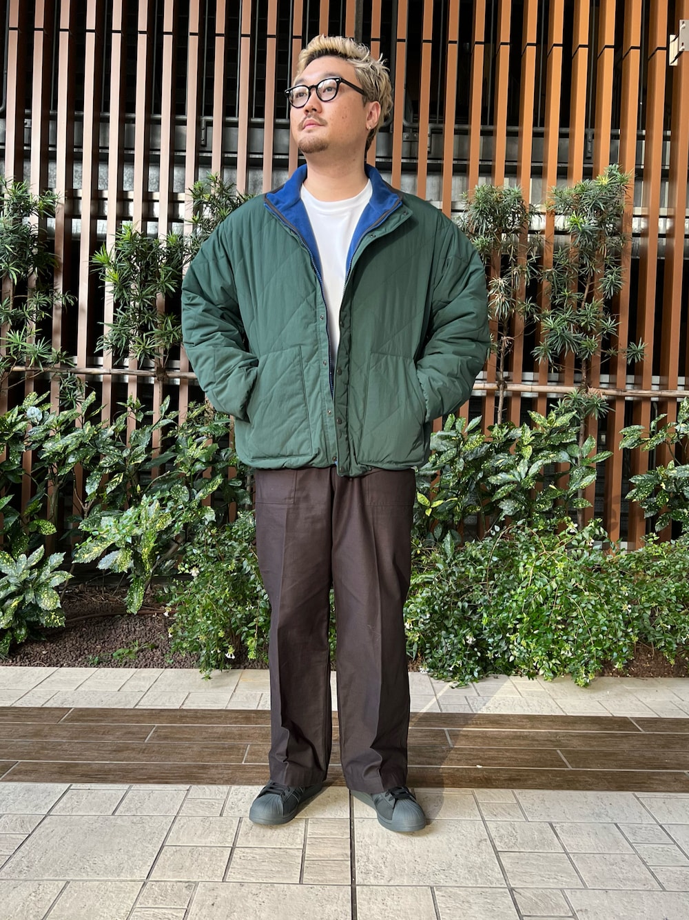 先日投稿した裏フリースリバーシブルブルゾンの別カラーを着用したコーデ!! 今回はレトロアウトドアな雰囲気が特徴的なグリーンをチョイス! シンプルなダイヤキルト面と、カジュアルなフリース面を楽しむことができるリバーシブル仕様になってます!! オーバーサイズなので様々なコーディネートで活躍してくれます! 是非お試しください!