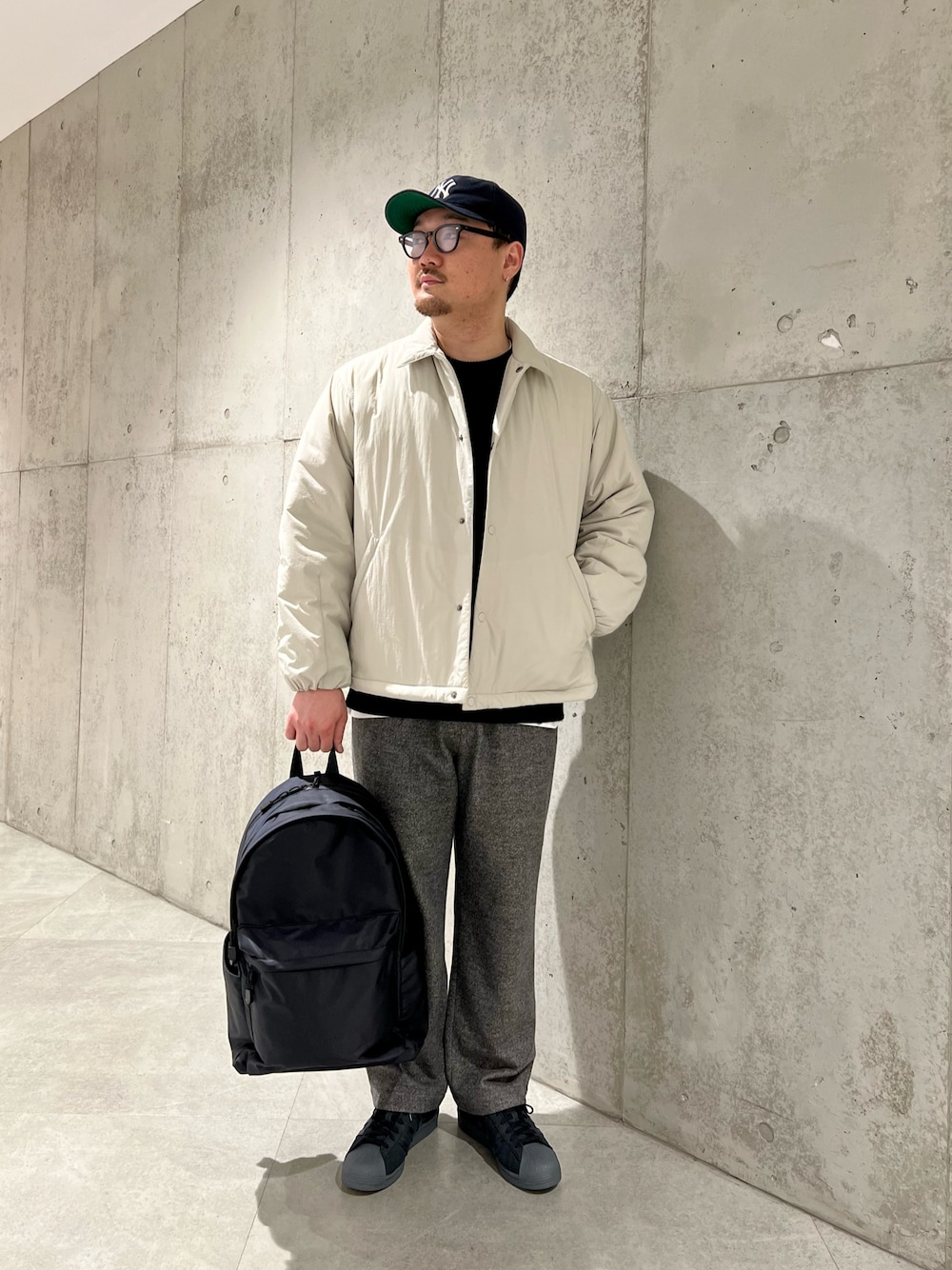 『UR TECH』中綿コーチジャケットを中心とした大人カジュアルコーデ! 身幅広めのボックスシルエットなので薄手のロンTから厚手のニット、スウェットまで様々なレイヤードが楽しめそうです!! ドローコードでシルエットを調節できる点も◎ 是非お試しください!!