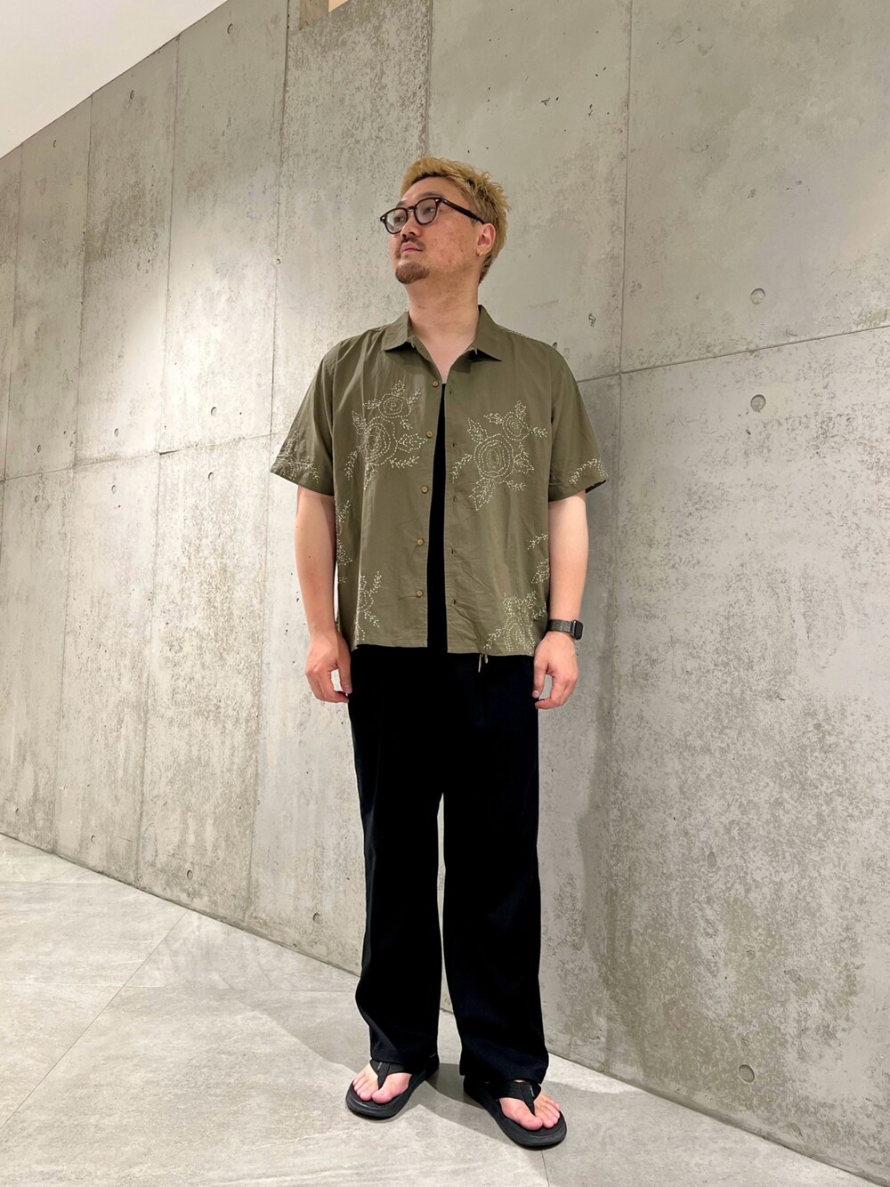 Sonny Labelからフラワーハンドエンブロイダリー半袖シャツを中心とした夏コーデ! 柔らかく薄手のシャツ生地に刺繍を施したオープンカラーシャツ! 一枚で様になる一着です! 是非お試しください!!