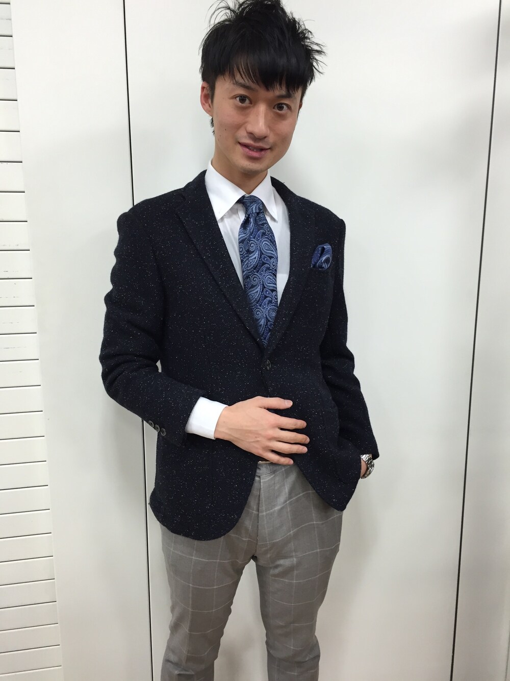 ジャケパンスタイルです。分かりにくいですがチーフもペイズリーで合わせてみました‼︎