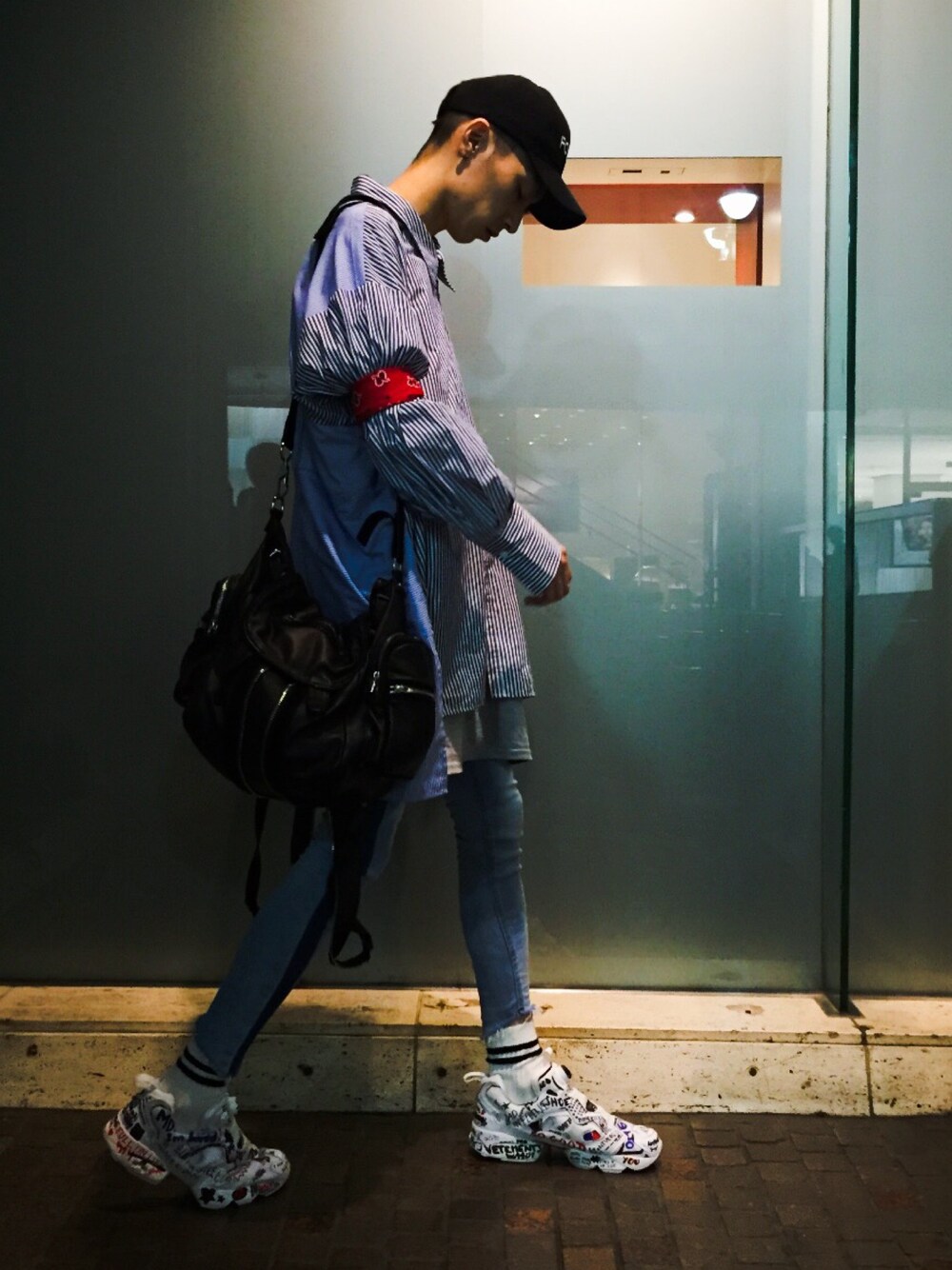 SIDE. ・shirt: ZARA ・pants: EMODA ・sneaker: VETEMENTS x reebok ・bag: Alexander Wang ・cap: ROTHCO