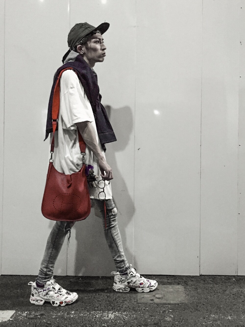 ・T-shirt: GILDAN ・shirt: Levis (Remake) ・sneaker: VETEMENTS x reebok ・bag: HERMES ・accessories: BURBERRY ・cap: LIAM HODGES