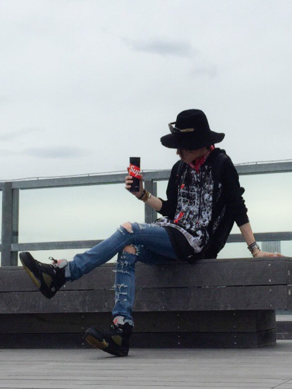 ・hoodie: POST GAME NYC ・sneaker: NIKE ・denim: UNIQLO ・hat: 5525gallery x KIJIMA TAKAYUKI ・bag: Supreme ・stole: NUMBER (N)INE