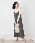 jun(le.coeur blanc)のワンピース「フラワープリントプリーツキャミワンピース」を使ったコーディネート