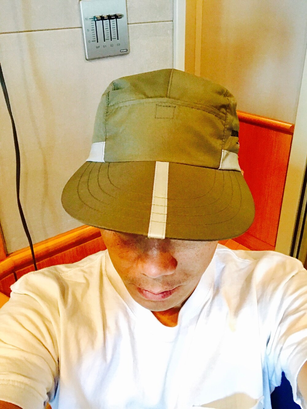 リップのナイロン生地を使用した ロングバイザーキャップ。頭部分にお札いれられる。リフレクターはってある。 アウトドアから、タウンユースでも使える。