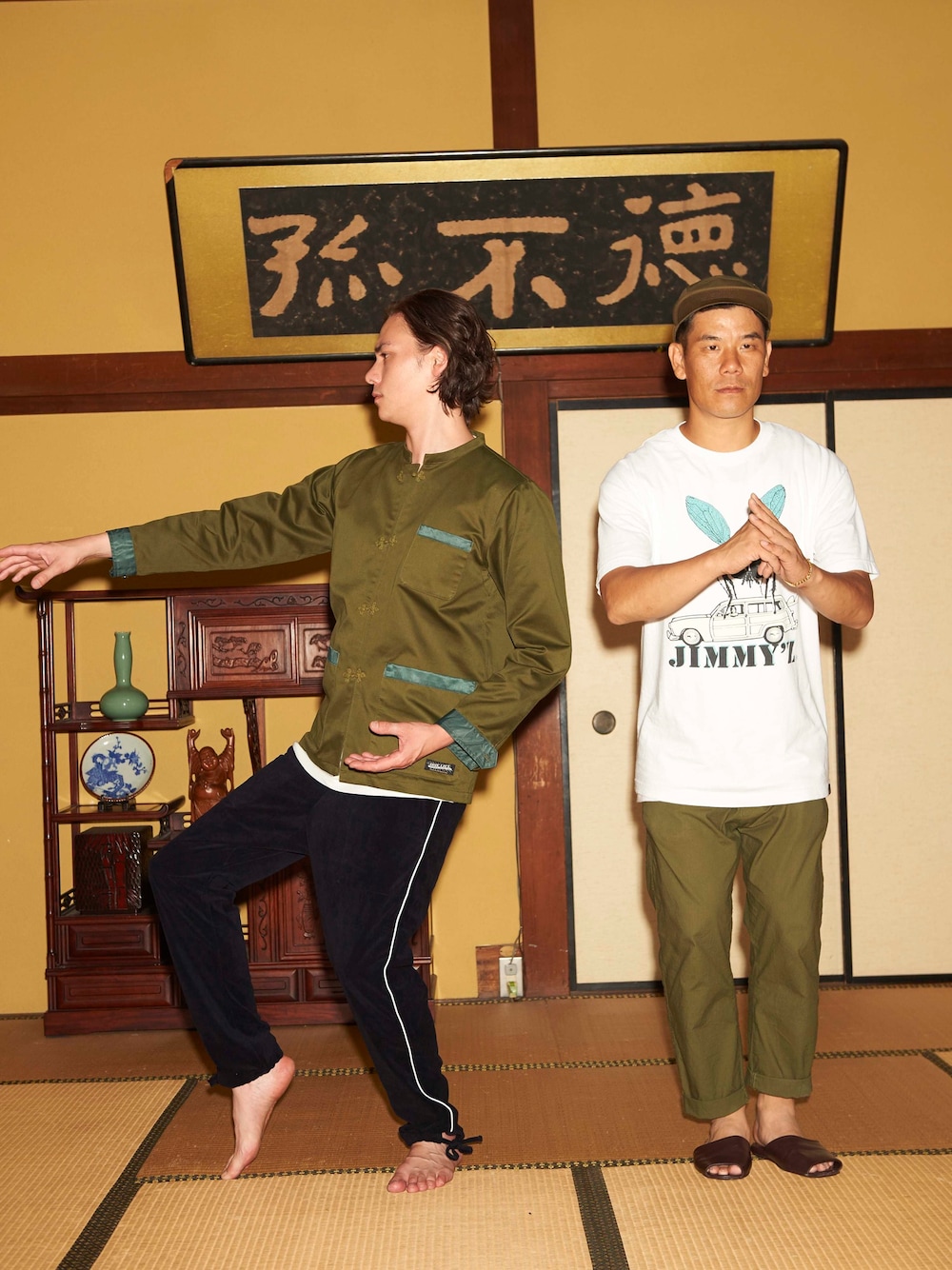 IRIELIFE秋冬カタログ撮影中。 モデル着用してるのは、秋にリリースするカンフーワークジャケットとベロアのパンツ