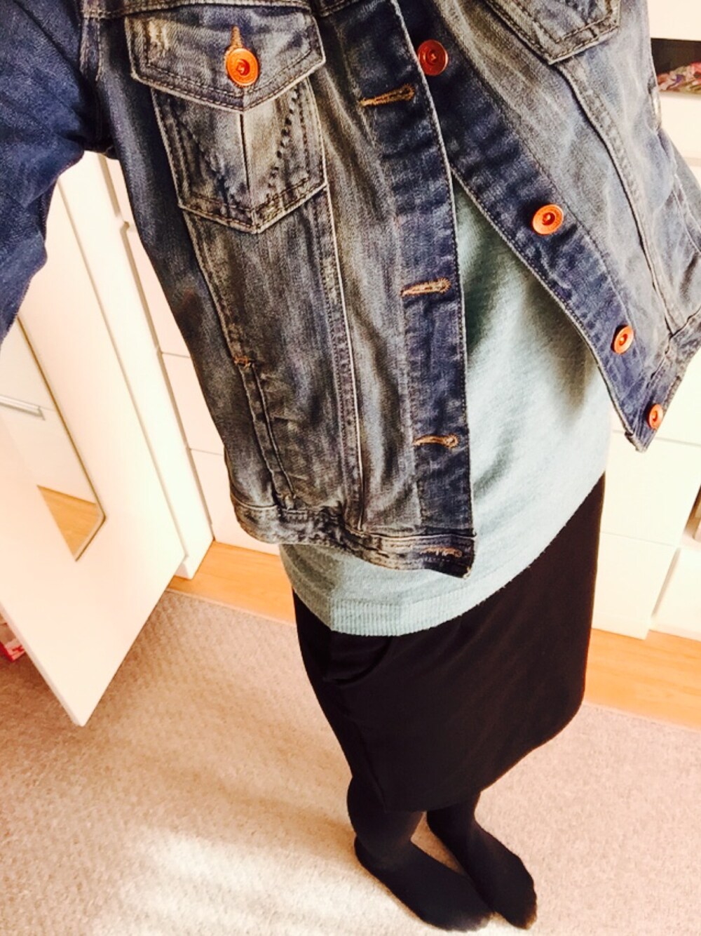 おはようございます(。・・)ノ 今日のお仕事スタイル♪ 今日の朝は少し寒かったな😵 Gジャン羽織ってちょうどいい(*˙︶˙*)☆*° また1週間始まったけど、頑張らねば〜💪✨