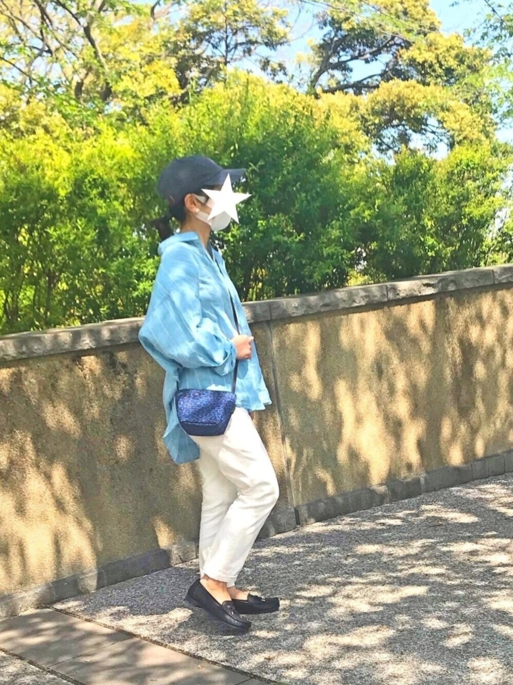 今日は暖かいので、シャツスタイルでお散歩♫ スッピンとボサボサヘアを隠すためについキャップを被ってしまう…