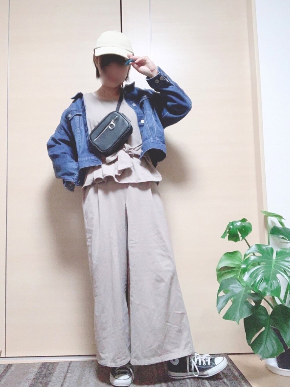 夏に買った ノースリーブ×パンツのセットアップ♡ Gジャンと合わせたら 意外とかわいかった😆❤️