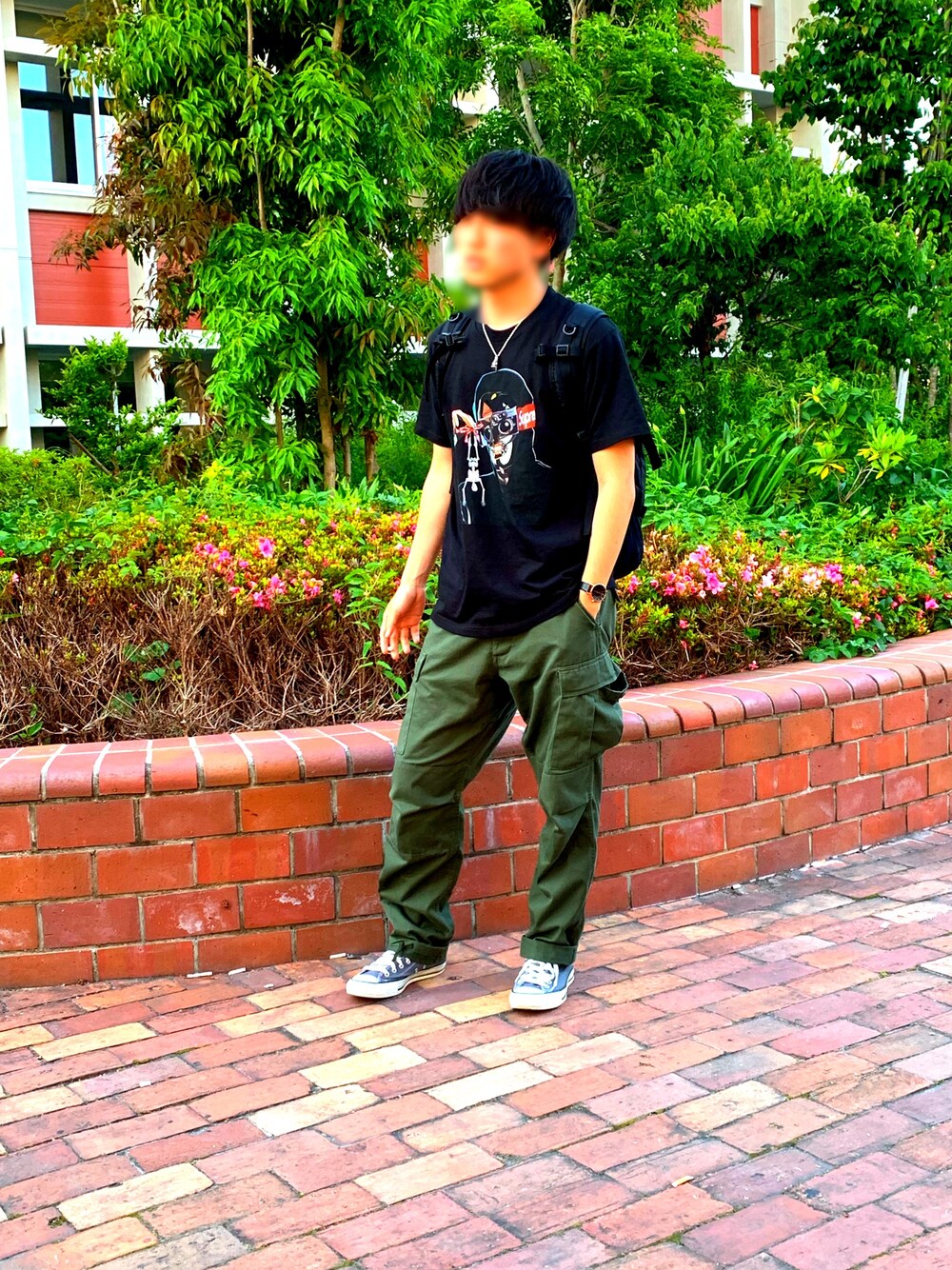 カーゴパンツを使ったゆるコーデです✨ たまには太いパンツも良いですね!! カーキと黒の組み合わせが好きなのでいつも合わせてます😊😊