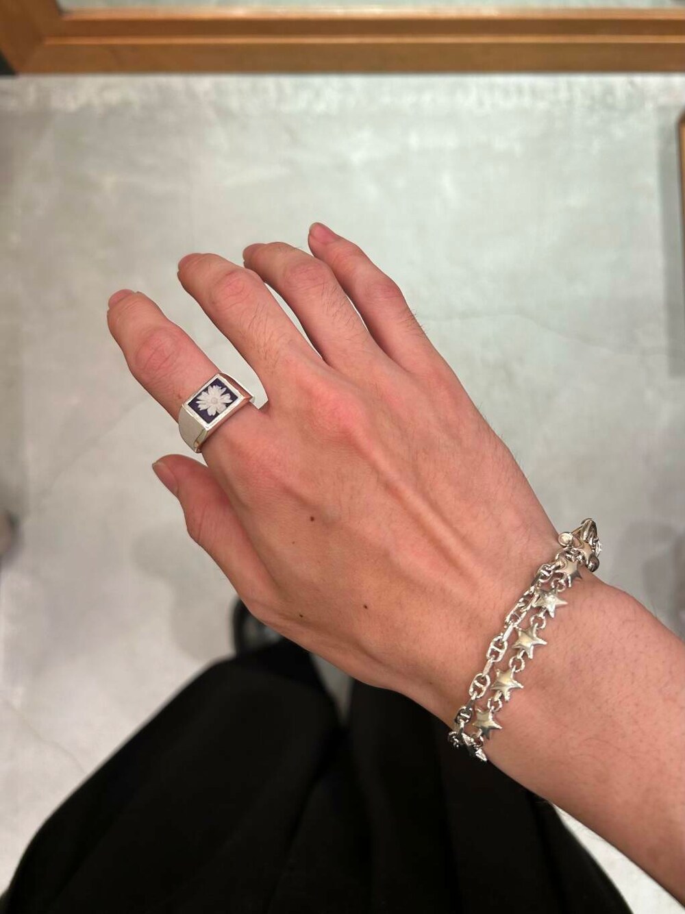 nishioka (URBAN RESEARCH アミュプラザ博多)のリング「XOLO Black Flower Ring」を使ったコーディネート