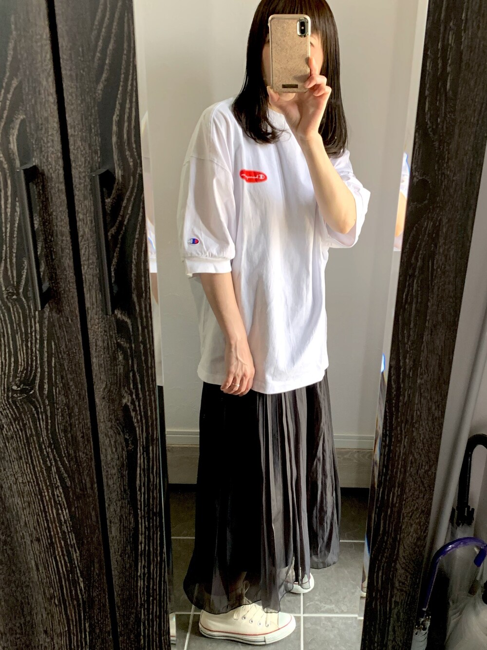 このスカート万能すぎて泣けてくる😭 広がりすぎないからシルエットがとてもキレイ✨ 透け感もちょうど良い😊 買ってよかった🙌🙌🙌