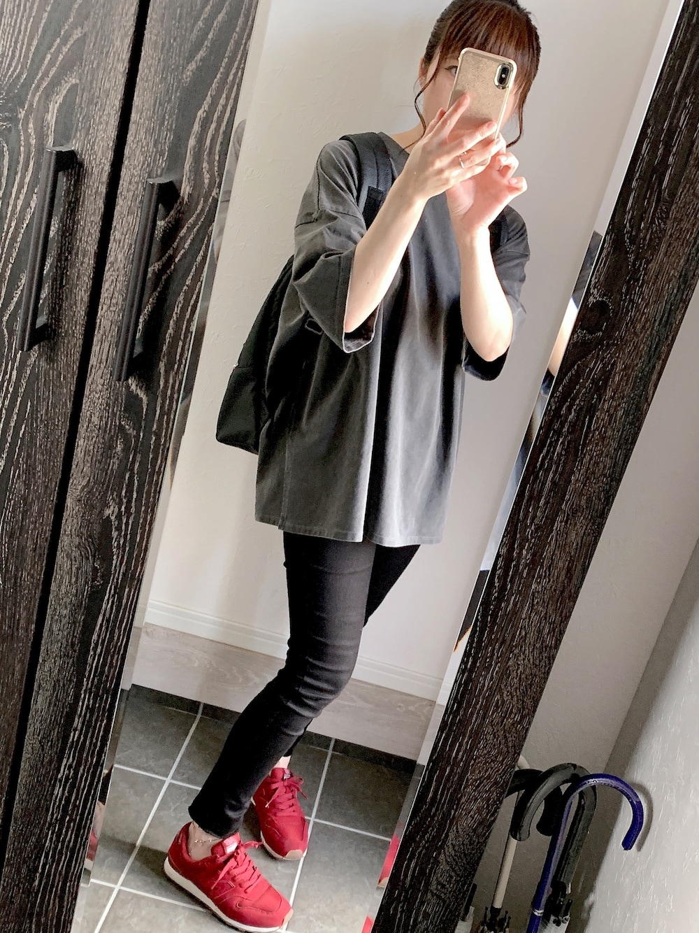 なんの変哲もないグレーのビックTシャツ😆👍✨ 秋が近づいているので袖丈長めはちょうどいい😊