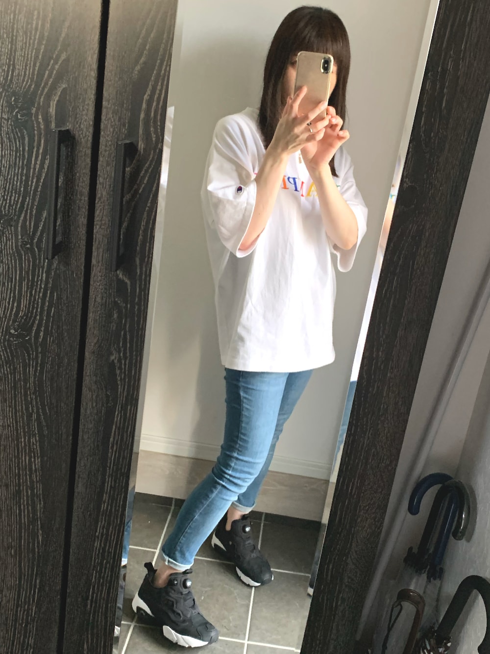 JcoRo☀︎のTシャツ/カットソー「【Champion/チャンピオン】レディース ビッグTシャツ」を使ったコーディネート