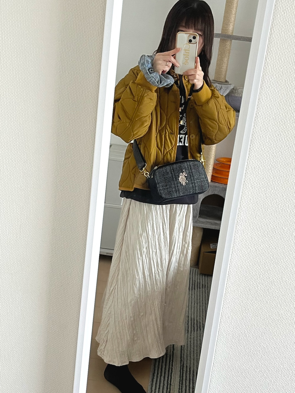 シュシュ持ったまま… このスカート、素材感も良く透けないからすごくイイ✨