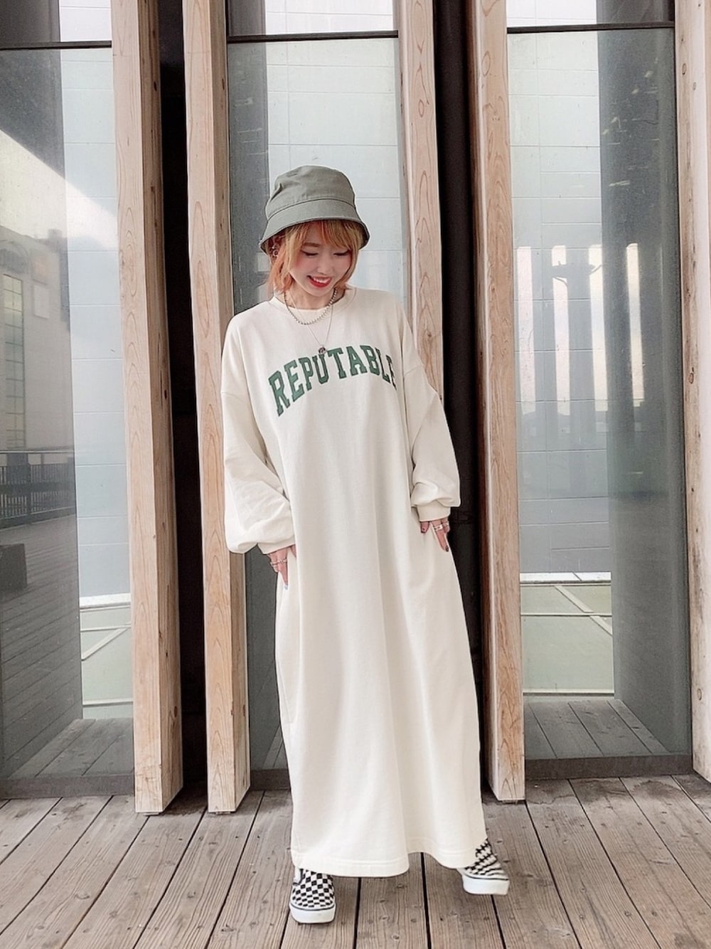 KAWAKAMI JUNKO のワンピース「【Alley】ロゴプリントリラックスワンピース」を使ったコーディネート