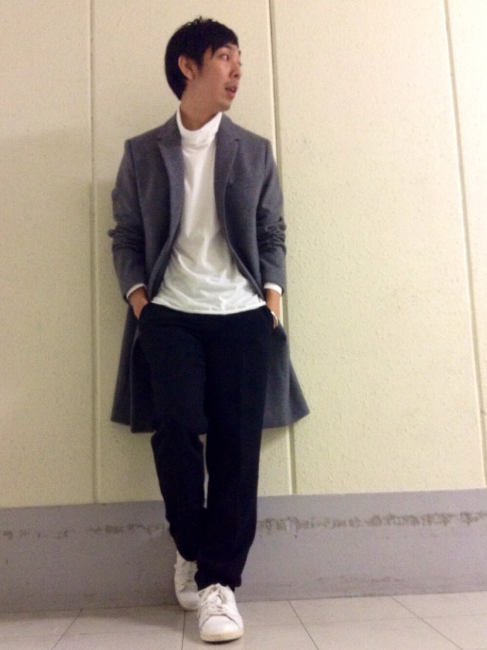 こんにちは。 グレーのコートにスラックス。 それに白のスタンスミス。 クリスヴァンアッシュがデビュー時にしていたのですが、かっこよすぎて今でもたまに真似します。 ・・・似ても似つかないんですけどね、自己満です。 明日はルミネへGO