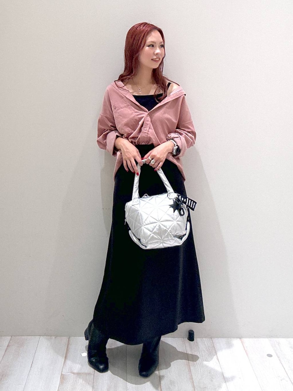 【シャツ】 細畝のコーデュロイなのでカジュアル過ぎることなく着用可能なシャツ。ビックシルエットでゆとりがあるサイズ感なのでリラックス感が出て、ボタンを全部閉めても楽な着心地。 【スカート】 微光沢のサテン素材のスカートは薄すぎない、程よい厚みがあるので高見え◎裾にかけてやや広がりのあるシルエットなのでタイトスカート程、身体のラインを拾いにくく、フレアシルエットよりカジュアルに使いやすいのもポイントです。 ぜひチェックして下さい☺︎ BAYFLOW shop staff. ☞ 162cm / 骨格ウェーブ / ブルベ冬 ✔︎トレンド感のある大人カジュアル ✔︎シンプルで高見えするスタイリング ✔︎着痩せ/細見え/スタイルUPコーデ Instagram @june.bf