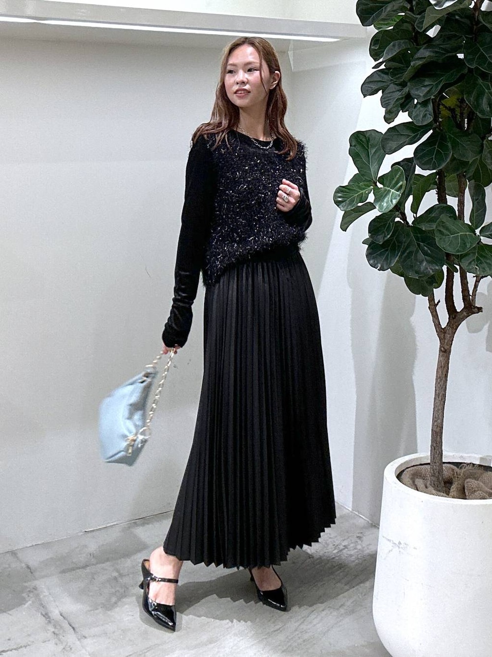 【ベスト】 深めのVネックでレイヤードしてもスッキリ見えするのがポイント。やりすぎない程よいラメ感が大人カジュアルコーデにもマッチ。お洗濯も可能なのでお手入れも楽ちんです。 【スカート】 フェイクレザーのスカートでもプリーツ加工が入っている事で柔らかみのある印象に!ウエストはゴムでめちゃくちゃ楽な履き心地。フリーサイズで162cmの私が履いてもしっかりと長さのある丈感なのも嬉しいポイント。 ぜひチェックして下さい☺︎ BAYFLOW shop staff. ☞ 162cm / 骨格ウェーブ / ブルベ冬 ✔︎トレンド感のある大人カジュアル ✔︎シンプルで高見えするスタイリング ✔︎着痩せ/細見え/スタイルUPコーデ Instagram @june.bf