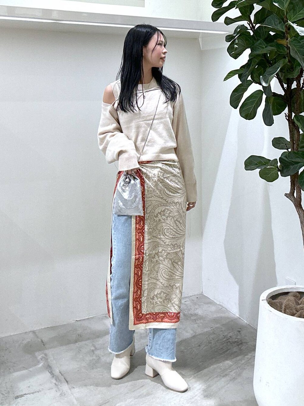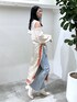 リアル店頭コーデ 【トップス】 ニットノースリーブとボレロがセットになったアイテム。一緒に着て軽く肩を出すのもかわいいですが、胸元のレザーの紐を引っ張ると肌見せ軽減できます。もちろん別々でも使えるのでTシャツとボレロを合わせたりしたりアレンジするのも楽しいです。 【ボトムス】 広がり過ぎないフレアシルエットなのでストレート寄りのすっきりしたシルエットで着用できるパンツ。裾はフリンジになっているのでシンプルコーデのアクセントにも!ストレッチ性もあり楽な履き心地です。 ぜひチェックして下さい☺︎ Instagram : ☞ 162cm / 骨格ウェーブ / ブルベ冬 〜 BAYFLOW立川店スタイリング 〜 ☑︎ 155cm ☑︎ 167cm ☑︎ 169cm ☑︎ 178cm